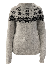 The Fonn unisex pullover is knitted from Icelandic wool yarn, Lettlopi.  Its design is inspired by Scandinavian traditions.  This modern pullover is warm and comfortable, a perfect garment to wear for any outdoor activity, or at work.
